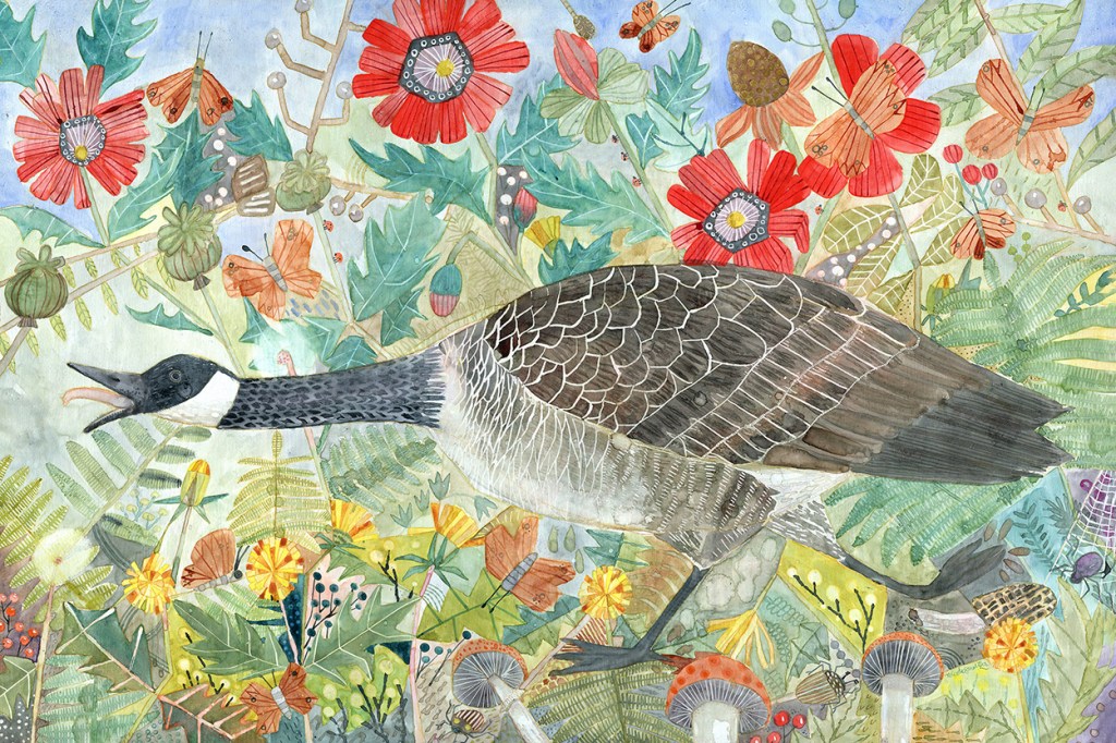 Angry Goose, watercolor on aquabord (painted on watercolor ground) and sealed with archival acrylic varnish, 36″x24″