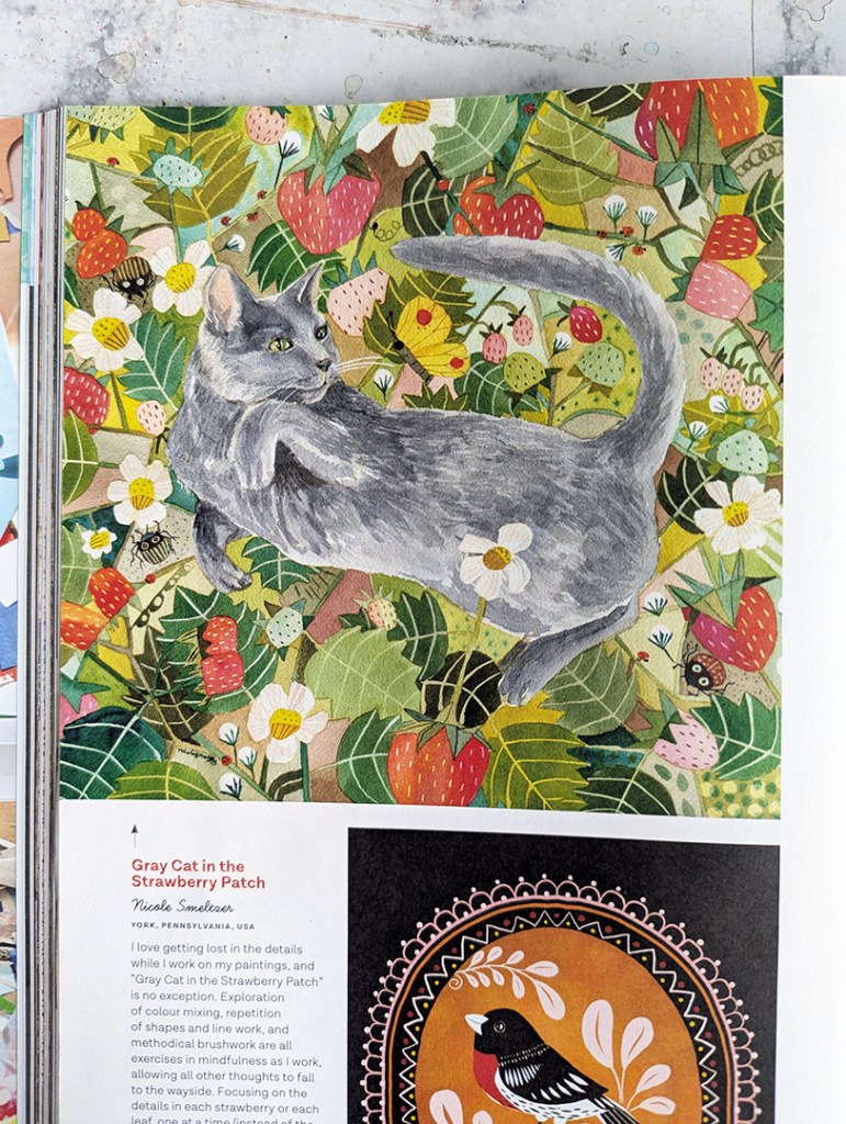 I am delighted that my recent watercolor painting Gray Cat in the Strawberry Patch was selected for publication in Uppercase Magazine! One my favorite magazines, Uppercase showcases crafts, design, typography and illustration. Each issue is a feast for the eyes. Flip through a virtual copy and check it out!