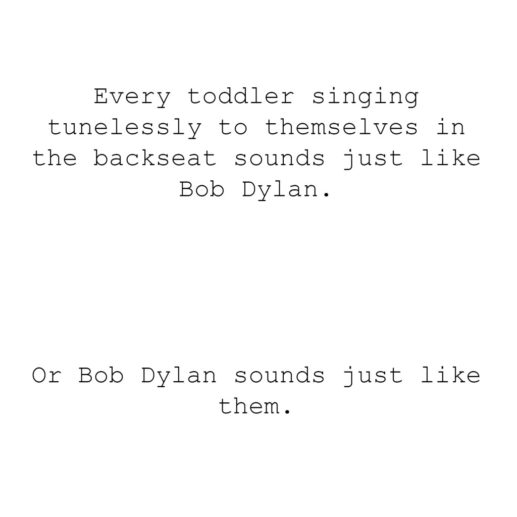 These are actual lyrics from a toddler-song my daughter sang, of course. I couldn’t come up with anything like that if I tried. Who am I, Bob Dylan?